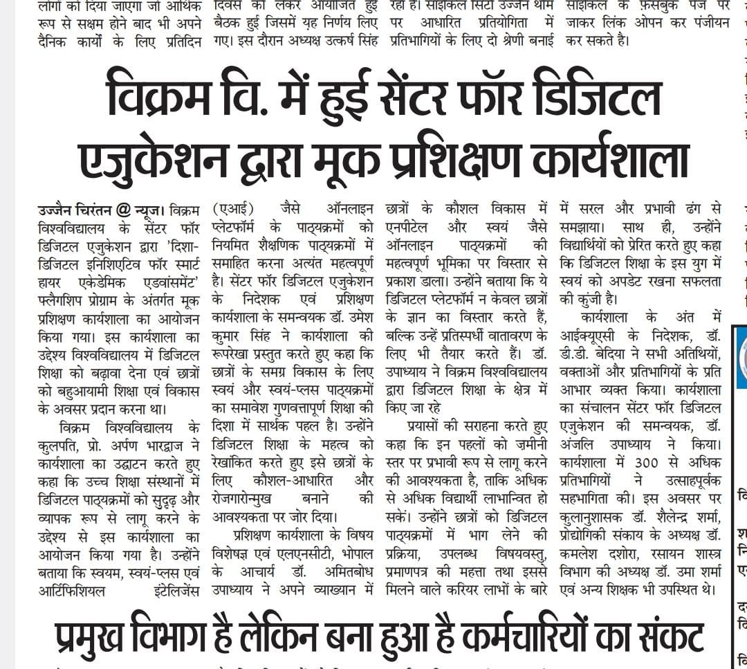 | 2025-05-19 | Workshop on MOOC Training | Dr Umesh Kumar Dr. Kamal Bunkar | Banner News | |