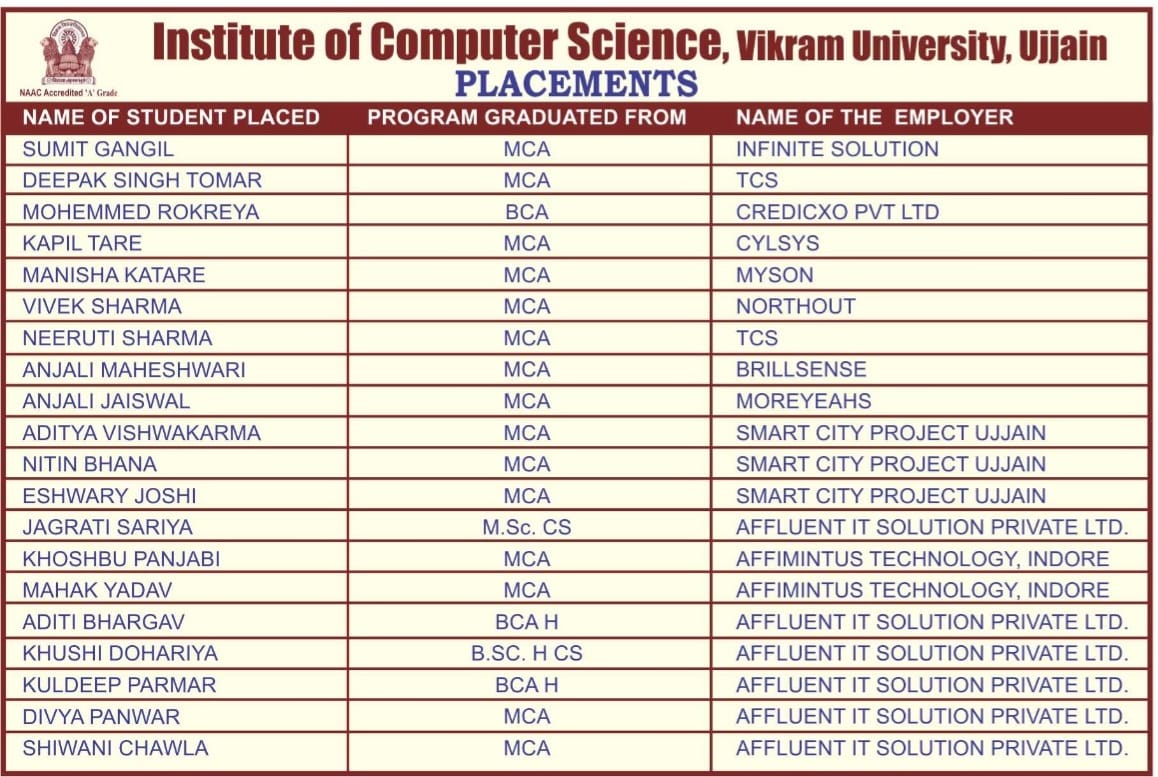 Our students are prepared in the most modern teaching and learning environment, created as per latest need of IT sector and are well placed in a reputed industrial houses across the world. Students of this Institute are placed in almost all of the top organizations of country and world like: